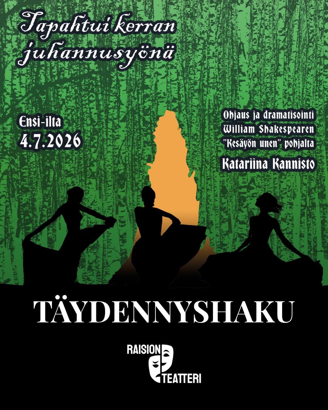 Kiinnostuitko? Ole pikimmiten yhteydessä sähköpostilla info(a)raisionteatteri.fi ja ilmianna itsesi!